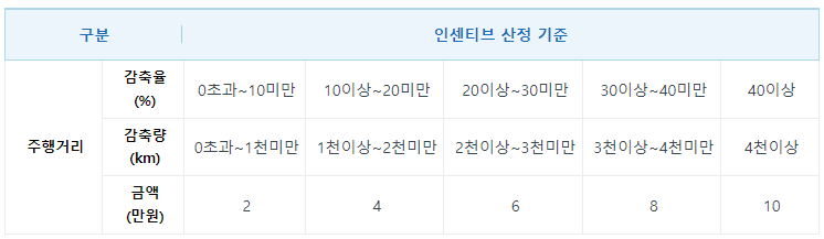 주행거리 인센티브는 감축률, 감출량 중 유리한 실적으로 적용됩니다.