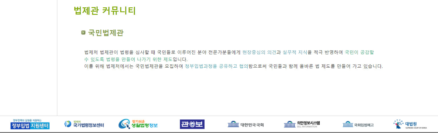 국민을 위한 법을 만들어가는 취지를 적극적으로 반영하여 국민들이 편리하게 입법활동에 참여하여 함께 이야기를 나누고 법에 대한 개선점 및 불편한 사항을 개진하는 곳이라고 합니다.