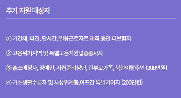 - 특수고용형태 종사자: 최근 3개월간 월평균 소득 300만 원 미만