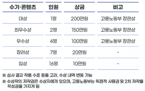 총 상금 1,200만 원 및 고용노동부 장관상 수여